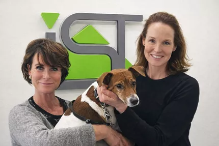 Bild: Olympionikin und Vielseitigkeitsreiterin Bettina Hoy (l.) mit IST-Dozentin Sabine Angemeer zur Podcastaufnahme im IST.