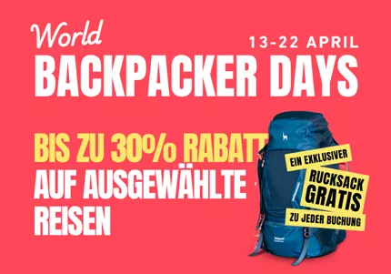 Im April promotet WeRoad die „World Backpacker Days“. Konkret bedeutet das: Vom 13. bis 22. April 2026 gibt es bis zu 30 % Rabatt auf ausgewählt Reisen, sowie einen 50-L-Rucksack im Wert von 129,- € auf jede Buchung. Dieser Rabatt darf mit dem Exklusivrabatt für IST-Studierende kombiniert werden! So können bis zu 40 % eingespart werden.